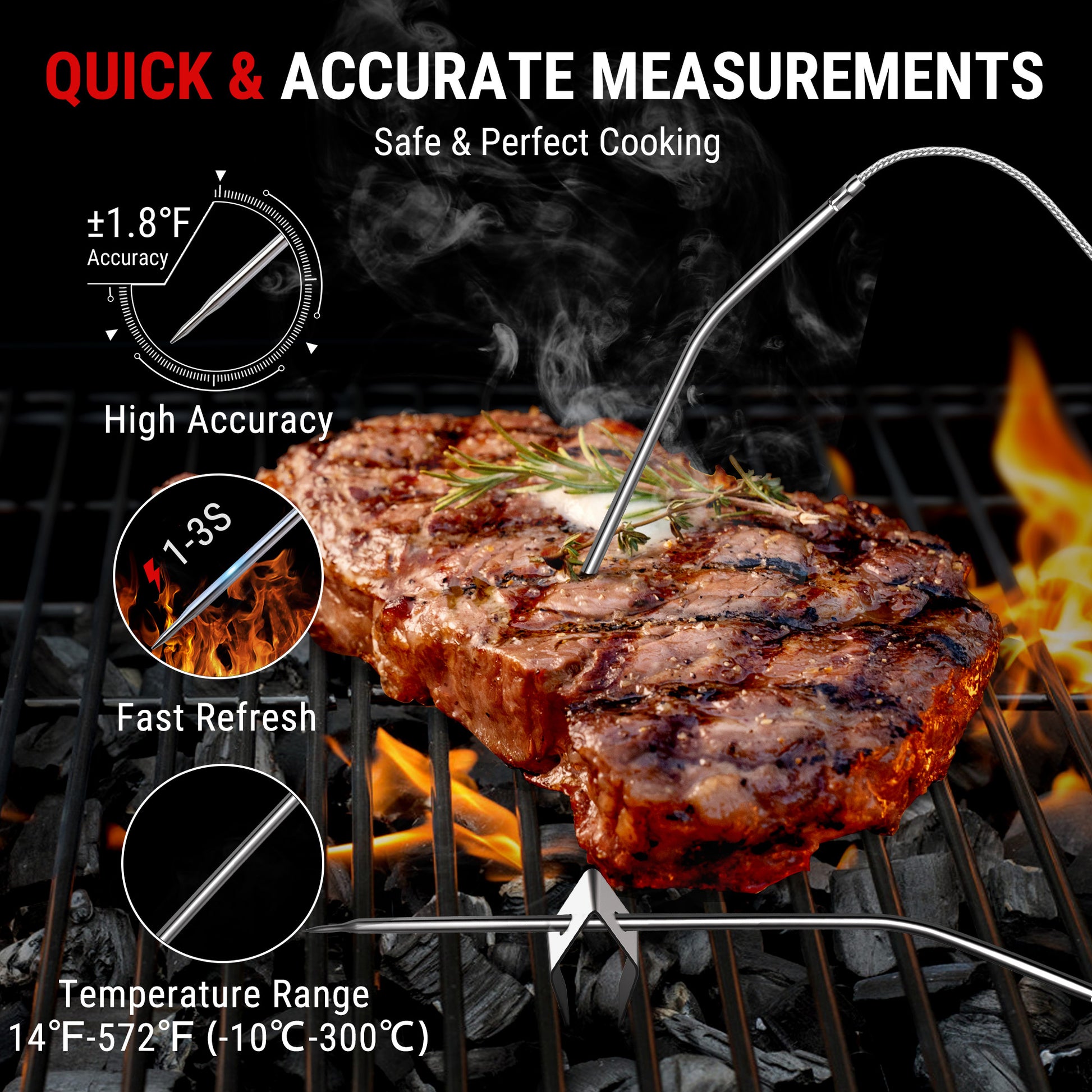4. Cook More, Worry Less: With double stainless-steel probes, you can monitor two dishes at once—perfect for larger family meals, holiday gatherings, or prepping meat and veggies at the same time.